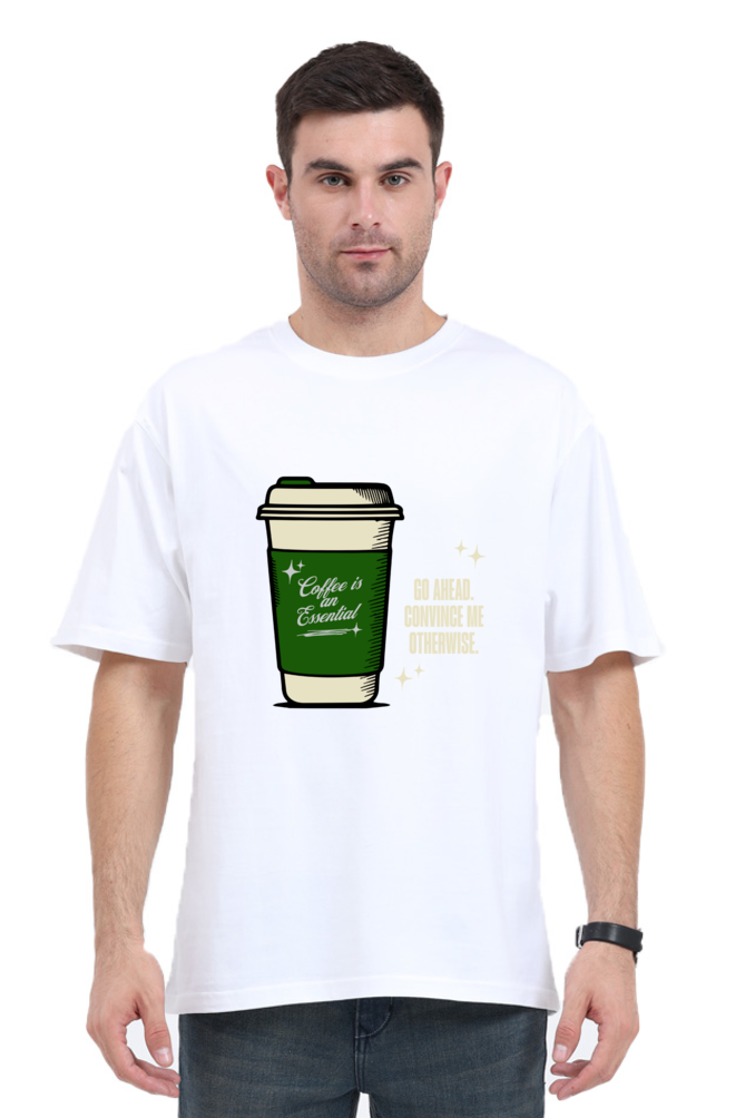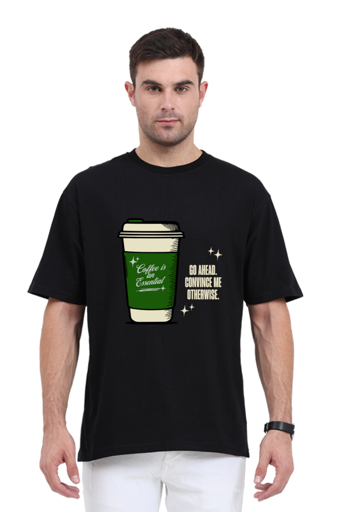 Fuel your day with the Coffee Is Essential Oversized T-Shirt, a must-have for coffee lovers with a bold sense of humor! This tee features a playful graphic of a to-go coffee cup with the cheeky phrase "Coffee Is an Essential" on one side and "Go Ahead, Convince Me Otherwise" on the other, accented by small star details. Perfect for casual wear, morning coffee runs, or cozy days, this shirt combines witty design with premium comfort for an effortlessly cool look.